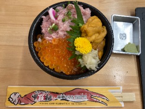 卵焼きやらマグロステーキやらの食べ歩きが一通り済んだら、メインの海鮮丼をいただきました。